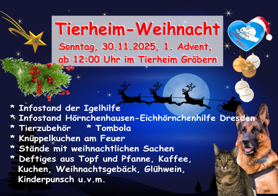 Wir bereiten gerade voller Freude unsere diesjährige Tierheim-Weihnacht vor und freuen uns auf Euren Besuch!