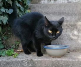Die Miez ist nicht sehr groß, sie ist ganz schwarz, hat nur zwischen Hals und Brust 5 weiße Haare. Sie ist gut gepflegt, also keine Streunerkatze. Gechipt ist sie nicht (waren beim Tierarzt). Sie ist sehr anhänglich. Hier in der Umgebung vermißt sie niemand. Könnte ja sein, sie ist neugierig in ein Auto gekrochen und vom Wohnort weggeschafft worden. Wir behalten sie bis sich hoffentlich doch mal der Besitzer findet. Falls Sie jemand vermisst, bitte anrufen unter: