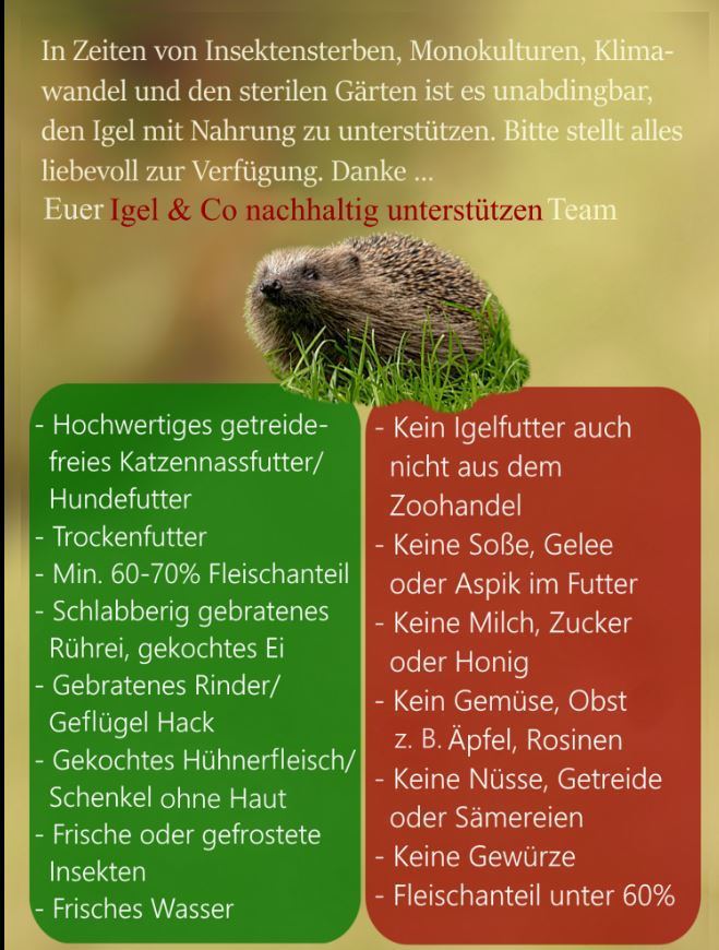 Alle Infos auch auf der Facebook-Seite "Info Seite-Igelhilfe Igel & Co's nachhaltig unterstützen"